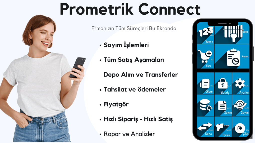 Modern işletmeler için geliştirilen Prometrik Connect, ERP sistemleri, e-ticaret platformları, yazarkasa POS cihazları ve mobil uygulamalar ile entegre çalışarak operasyonların daha hızlı, verimli ve hatasız yürütülmesini sağlar.